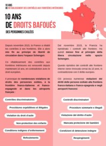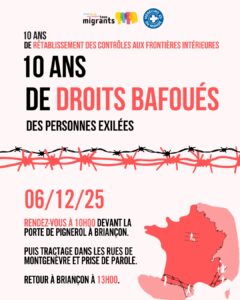 «10 ans de rétablissement des contrôles aux frontières intérieures, 10 ans de droits des personnes exilées bafoués ». Le samedi 6 décembre, à l’appel de la Coordination des Actions aux Frontières Intérieures (CAFI) dont fait partie La Cimade, de Tous Migrants et d’associations italiennes, une centaine de militants solidaires ont commémoré les 10 ans de fermeture de la frontière.
