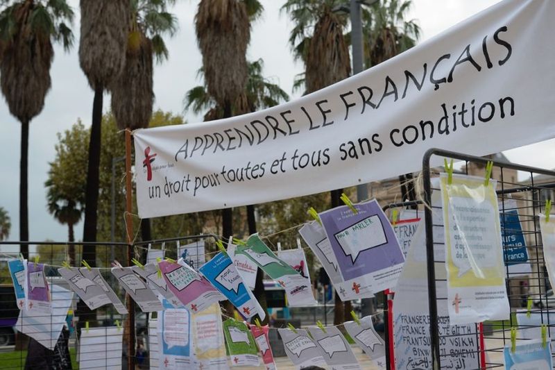 Ce 8 septembre, journée internationale de l’alphabétisation, le collectif Le Français pour toutes et tous, dont fait partie la Cimade, s’est mobilisé dans près d’une trentaine de villes contre l’augmentation des exigences linguistiques pour le renouvellement des titres de séjour et la dématérialisation des cours donnés par l’OFII.