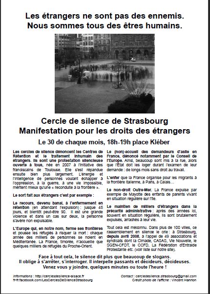 10 ans du cercle du silence – le 30 mai 2018 à 18h Place Kléber (Strasbourg)
