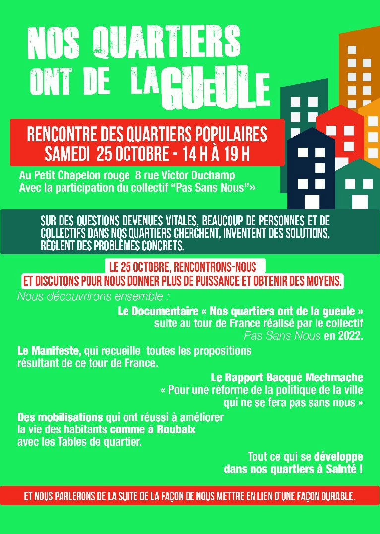 Le groupe local de la Cimade de Saint-Etienne participera à une rencontre des quartiers populaires samedi 25 octobre de 14h à 19h.