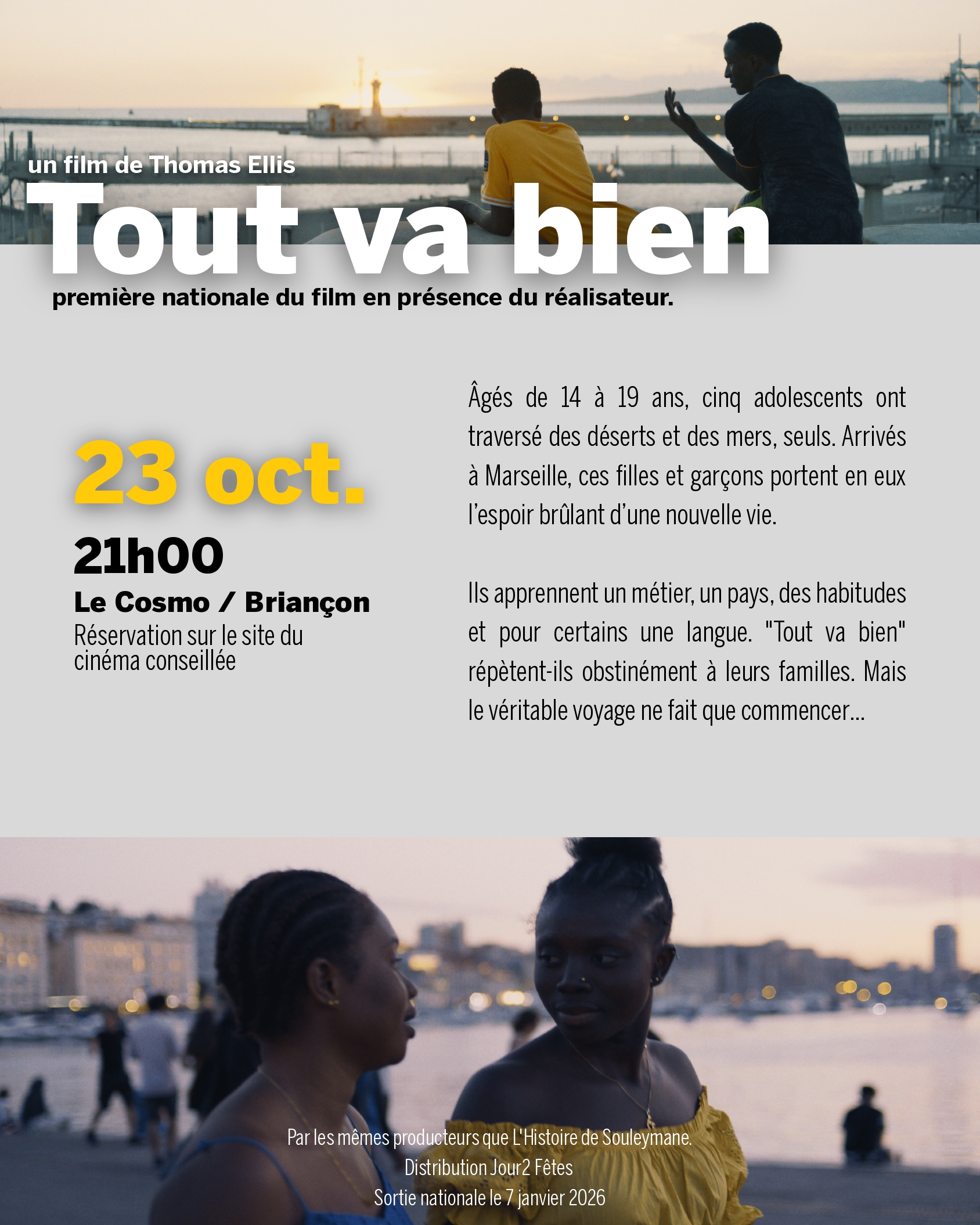 Heureux de vous annoncer que l’avant-première de France de mon film TOUT VA BIEN aura lieu à Briançon, le jeudi 23 octobre à 21h au Cinéma Le Cosmo .