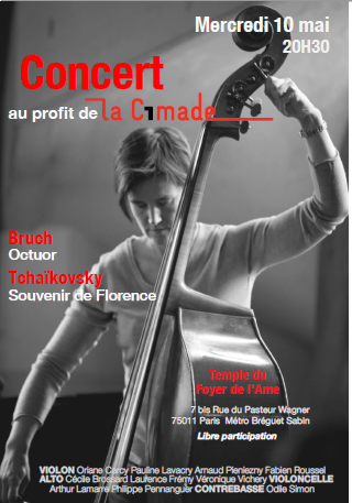Deux pièces de Bruch et Tchaïkovski interprétées par un quatuor à cordes. Concert organisé au profit de La Cimade.