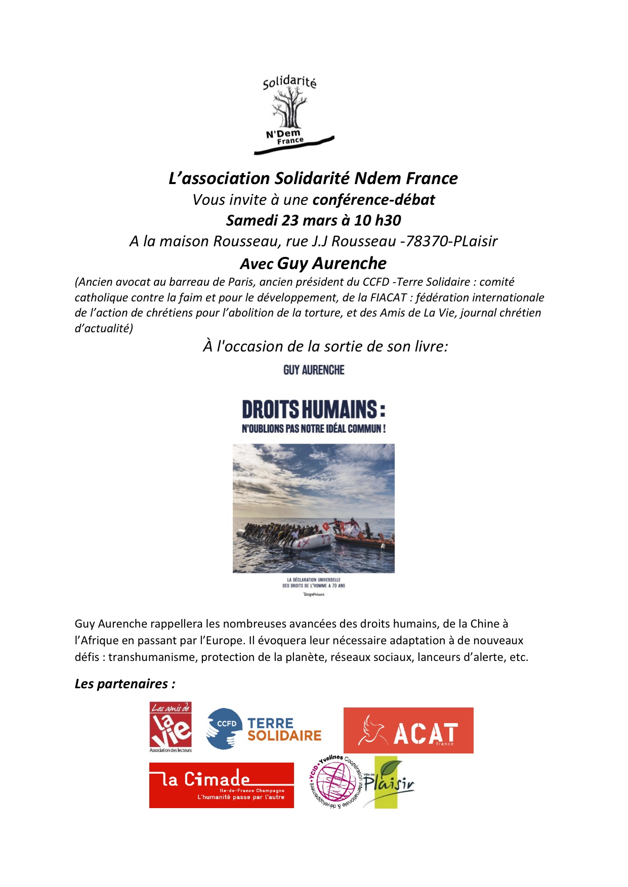 L’association Solidarité Ndem France vous invite à une conférence-débat le samedi 23 mars à 10h30