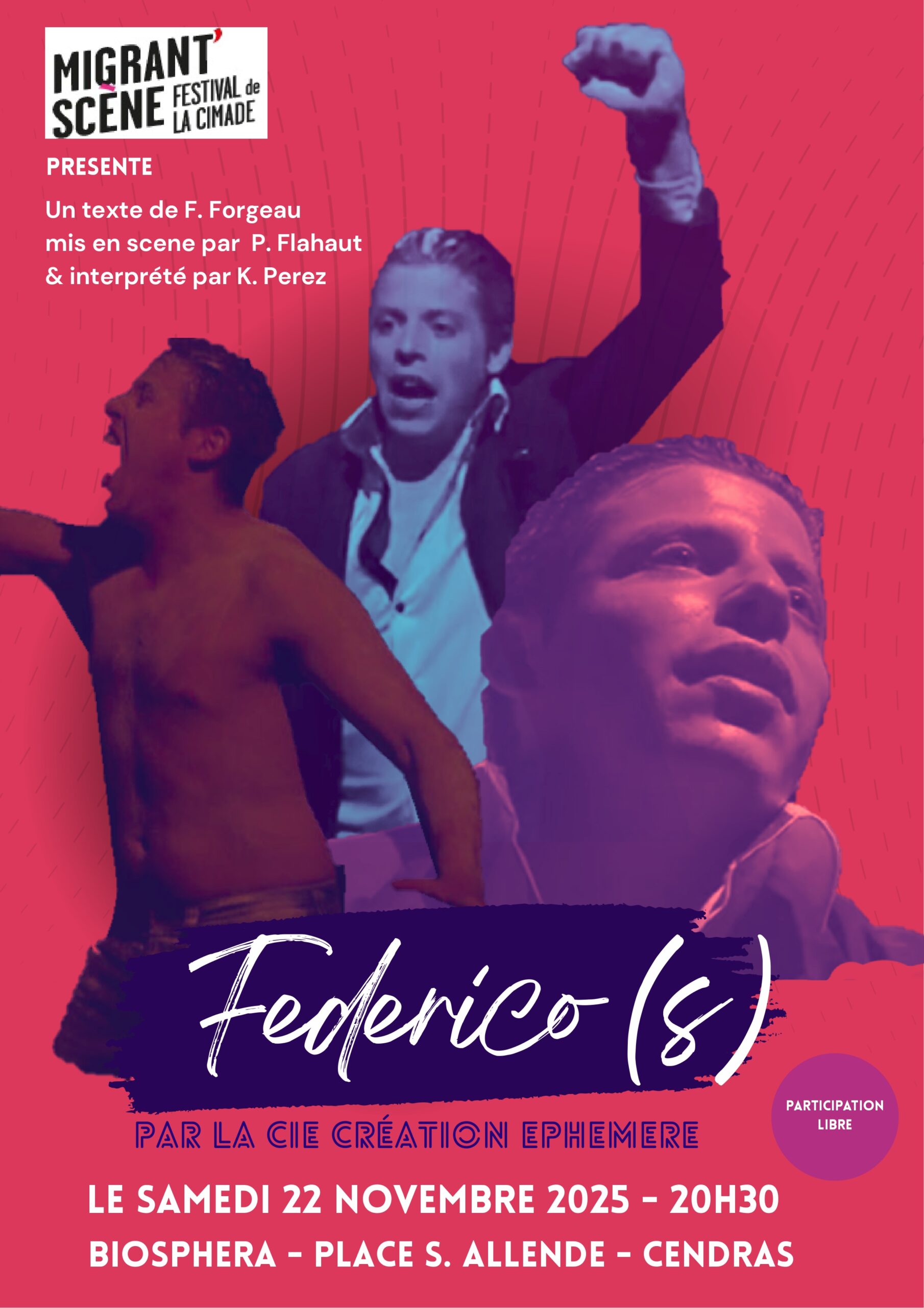 Dans le cadre de Migrant’Scène, le 22 novembre se tiendra au Biosphera de Cendras, la représentation de Federico(s) par la Compagnie Création Ephémère.