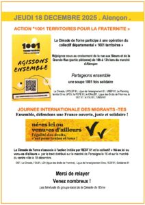 10h00 : Alençon – Action sur le marché et partage d’une soupe en lien avec le collectif « 1001 territoires pour la fraternité »