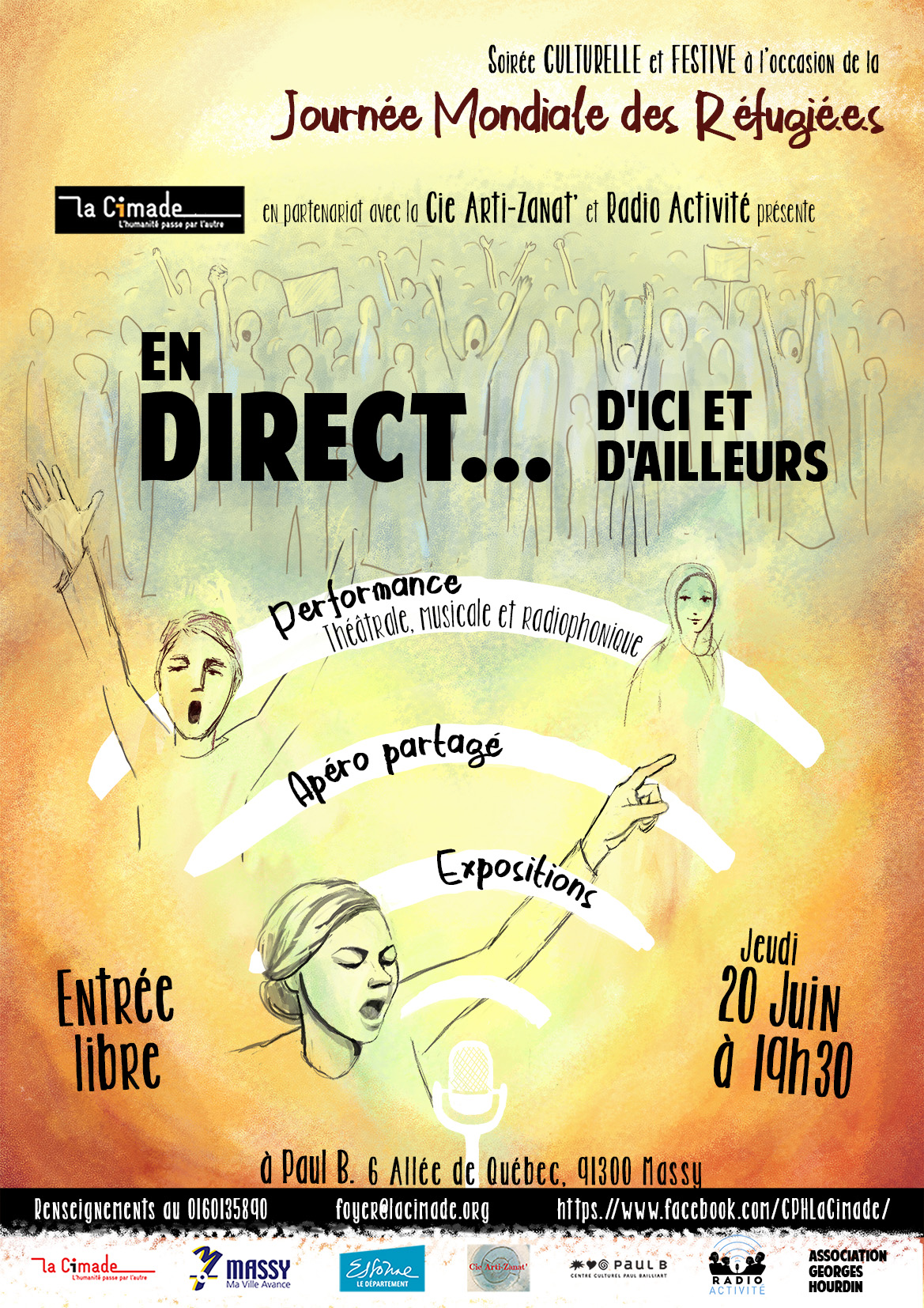 Cette année, nous vous invitons à participer à une performance théâtrale, musicale et radiophonique, en partenariat notamment avec l’association Radio Activité qui au sein de son projet Micro Camp Radio donne la parole aux personnes exilées.