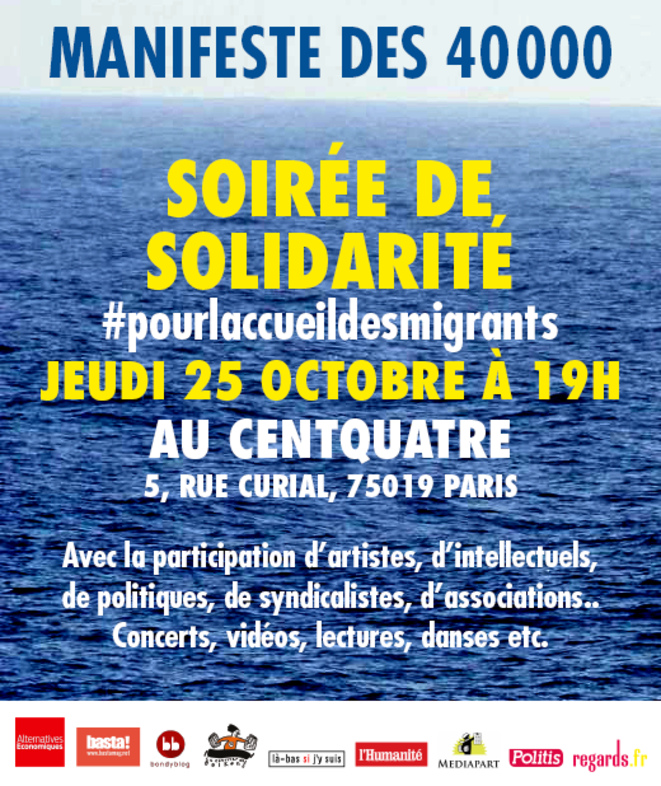 Parmi les nouveaux soutiens, de nombreux médias. Alternatives économiques, Basta!, Le Bondy Blog, Le Courrier des Balkans, Là-bas si j’y suis, L’Humanité, Mediapart, Politis et Regards, désormais associés, organiseront au Centquatre, le 25 octobre prochain, dès 19h, une manifestation publique, conviviale.