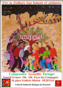 Samedi 24 mars au Foyer des Campagnes à Pézenas Journée « D’ici et d’ailleurs, tous humains et solidaires » de 10 h à 18 h avec table-rondes, projection du film « J’ai marché jusqu’à vous » de Rachid OUJDI et temps musicaux, proposée par le Collectif Solidarité Réfugiés du piscinois dont la cimade fait […]