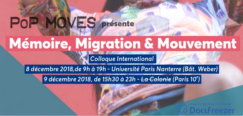 PoP MOVES, en partenariat avec l’Université de Paris Nanterre et La Colonie, organise son colloque 2018 à Paris sur le thème: Mémoire, Migration et Mouvement.