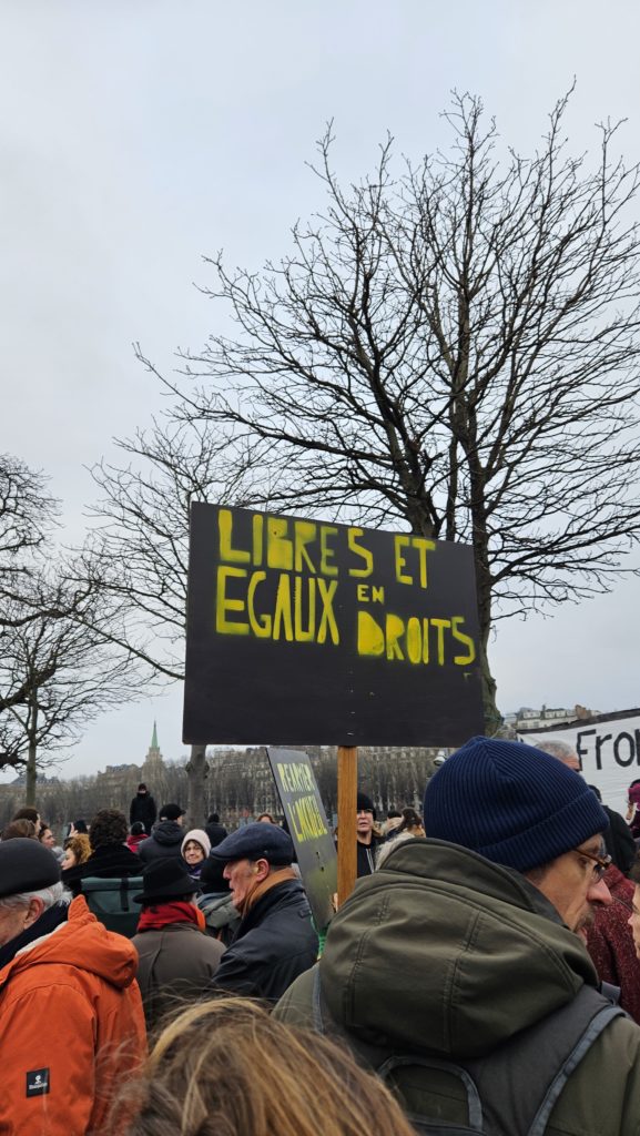 Nous savons également que l’État de droit nous protège d’un autre fléau. Car, garantie de l’exercice des droits et des libertés fondamentales, l’État de droit est également ce qui contribue à ce que les relations qui se nouent entre les citoyennes et les citoyens ne soient pas abandonnées à la violence, à la force, aux pouvoirs sans limites, aux mauvaises passions mais puissent être régulées par des normes juridiques. A l’heure où les haines racistes et antisémites, le masculinisme et les offensives anti-IVG ainsi que le mépris des habitats naturels connaissent une vigueur renouvelée, l’État de droit nous apparaît d’autant plus précieux.