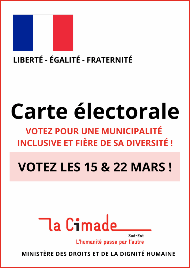 Dans les Hautes-Alpes, à Nice et à Marseille, les bénévoles de La Cimade se mobilisent à travers différentes actions, notamment le tractage d’un dépliant en forme de carte électorale, pour inciter les citoyen·ne·s à aller voter.
