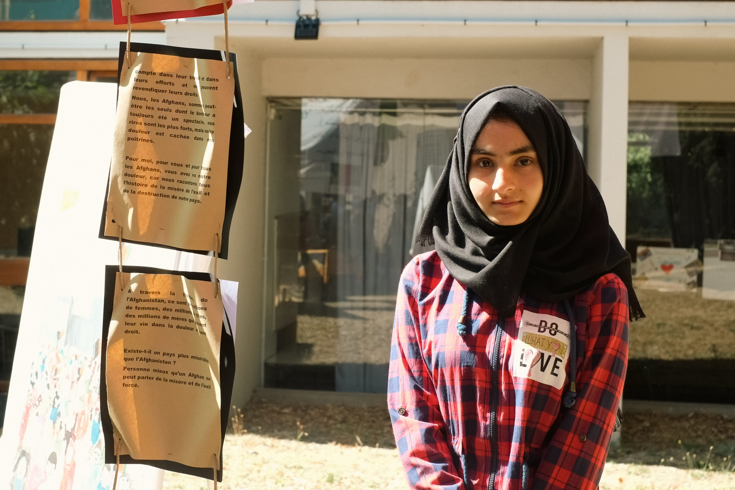 Pas loin de Shokria se trouve Basira, une jeune femme de 18 ans, déterminée à faire passer le message du respect des droits des femmes en Afghanistan. Elle est arrivée en France en septembre 2021, après plus de 18 mois d’attente pour rejoindre son père déjà en France depuis sept ans : « Je me sens très bien depuis que je suis venue en France. Ma vision a complètement changé. J’aimerai bien étudier l’informatique » souligne-t-elle.