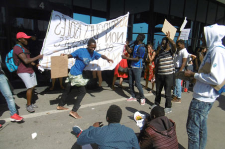 Environ une trentaine de jeunes, et leurs soutiens: Al Manba, RESF, la Cimade, Médecins du Monde, la Ligue des Droits de l’Homme, Réseau Hospitalité, citoyens et politiques (PC, FI…) . En tout 150 personnes.