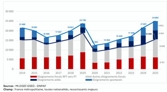Les expulsions en 2025 ont augmenté de 15,7 % par rapport à l’année dernière et présentent, avec près de 25 000 expulsions réalisées, le plus haut chiffre enregistré au cours de ces dix dernières années.