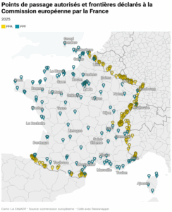 Depuis 2015, les contrôles aux frontières intérieures ont été rétablis, impliquant la mise en place par la France de points de passage autorisés (PPA) où sont exercés des contrôles par la police aux frontières, et plus particulièrement au niveau de Montgenèvre, dans les Hautes-Alpes, et Menton dans les Alpes Maritimes.