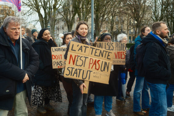 Nous étions près de 300 personnes rassemblées à Lille pour dénoncer les délais de traitement des demandes de titre de séjour et réclamer un véritable accès aux services de la préfecture.