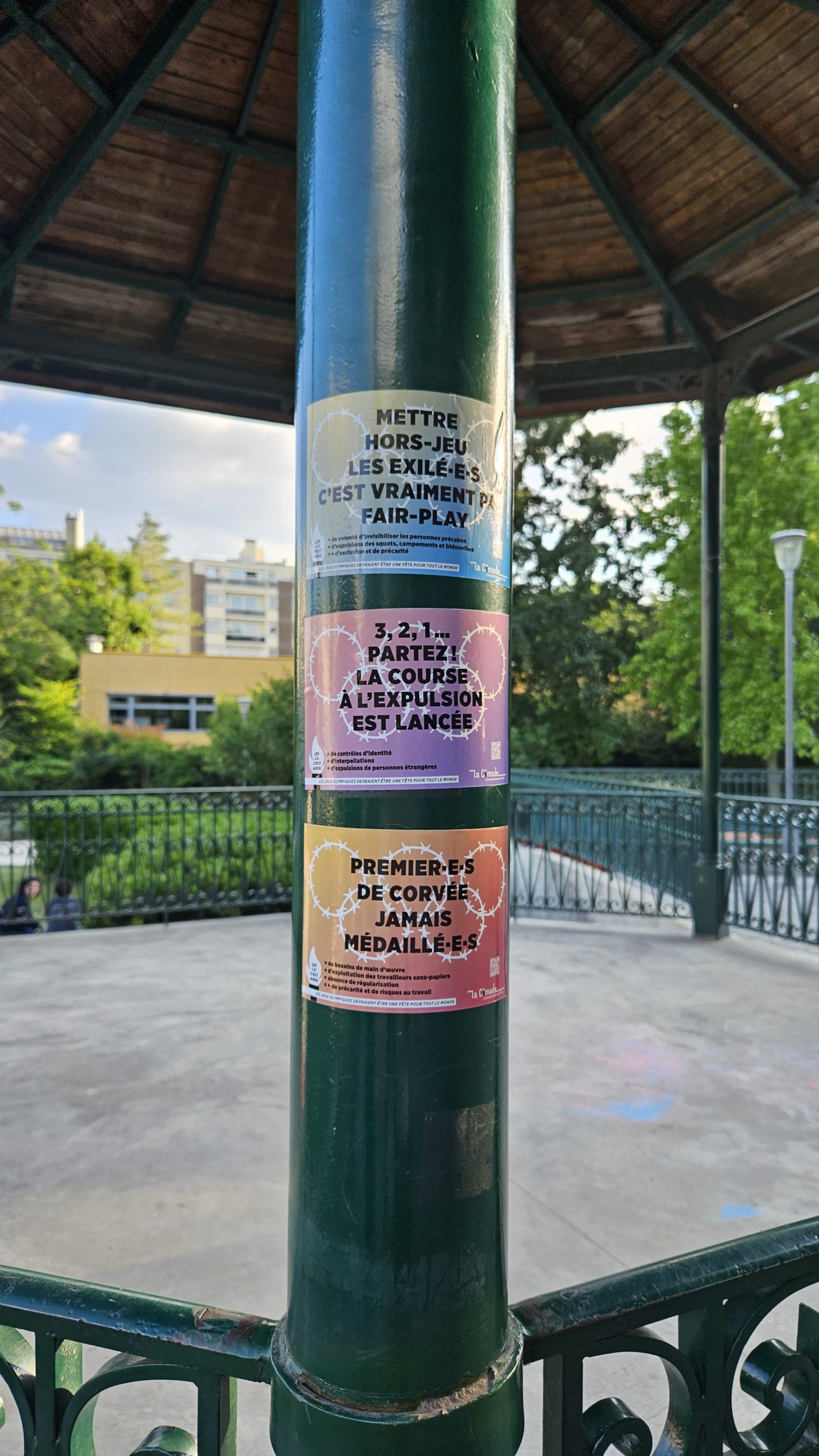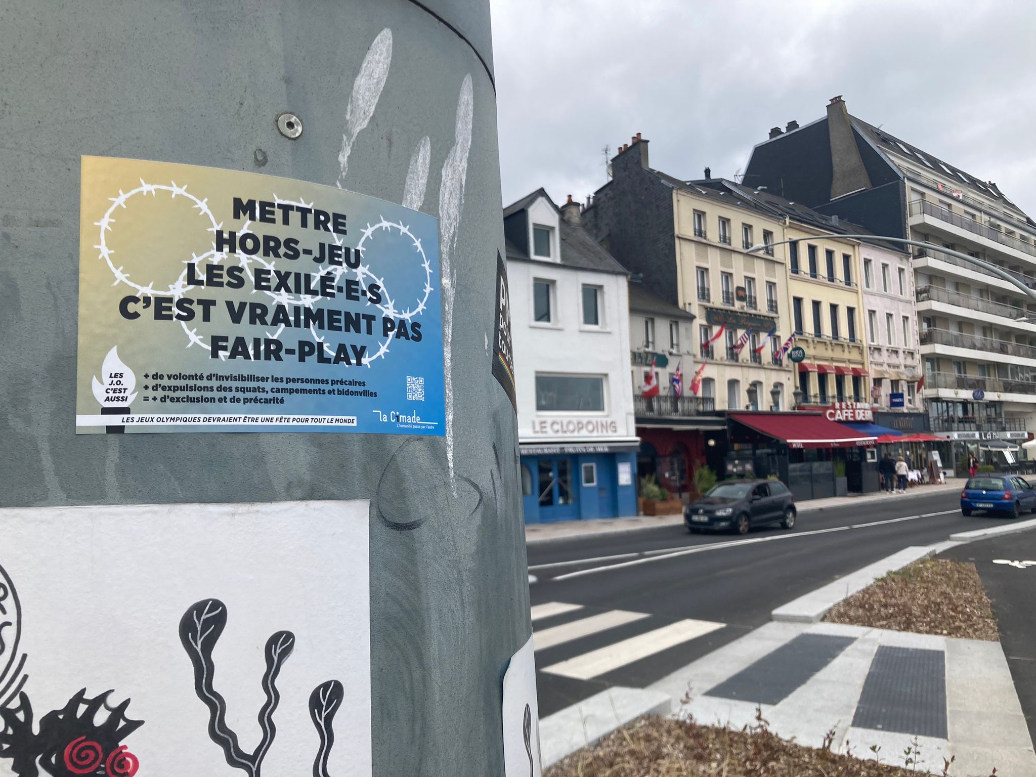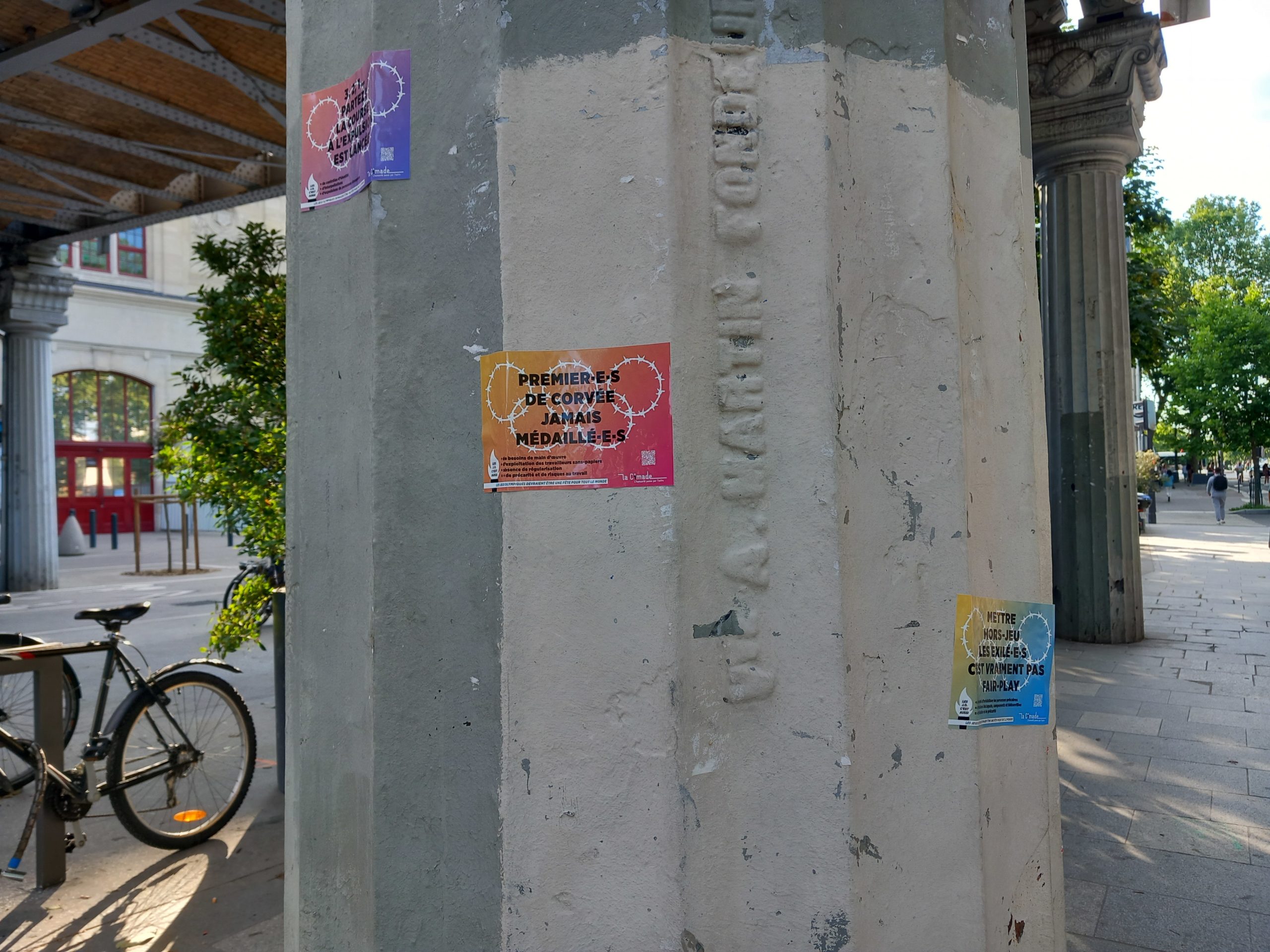 Afin de sensibiliser le grand public à la situation des personnes exilées en cette période de Jeux Olympiques, La Cimade a lancé des opérations de collage de stickers dans l’espace public pour interpeller les passant.e.s et faire entendre ses revendications.