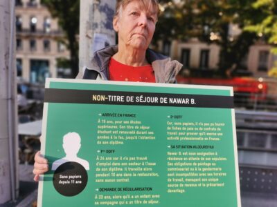 Parce qu’aujourd’hui, vivre sans subir des procédure ubuesques, sans avoir peur au quotidien, sans être stigmatisé et fragilisé, ce n’est pas donné à tout le monde : régularisez ! »