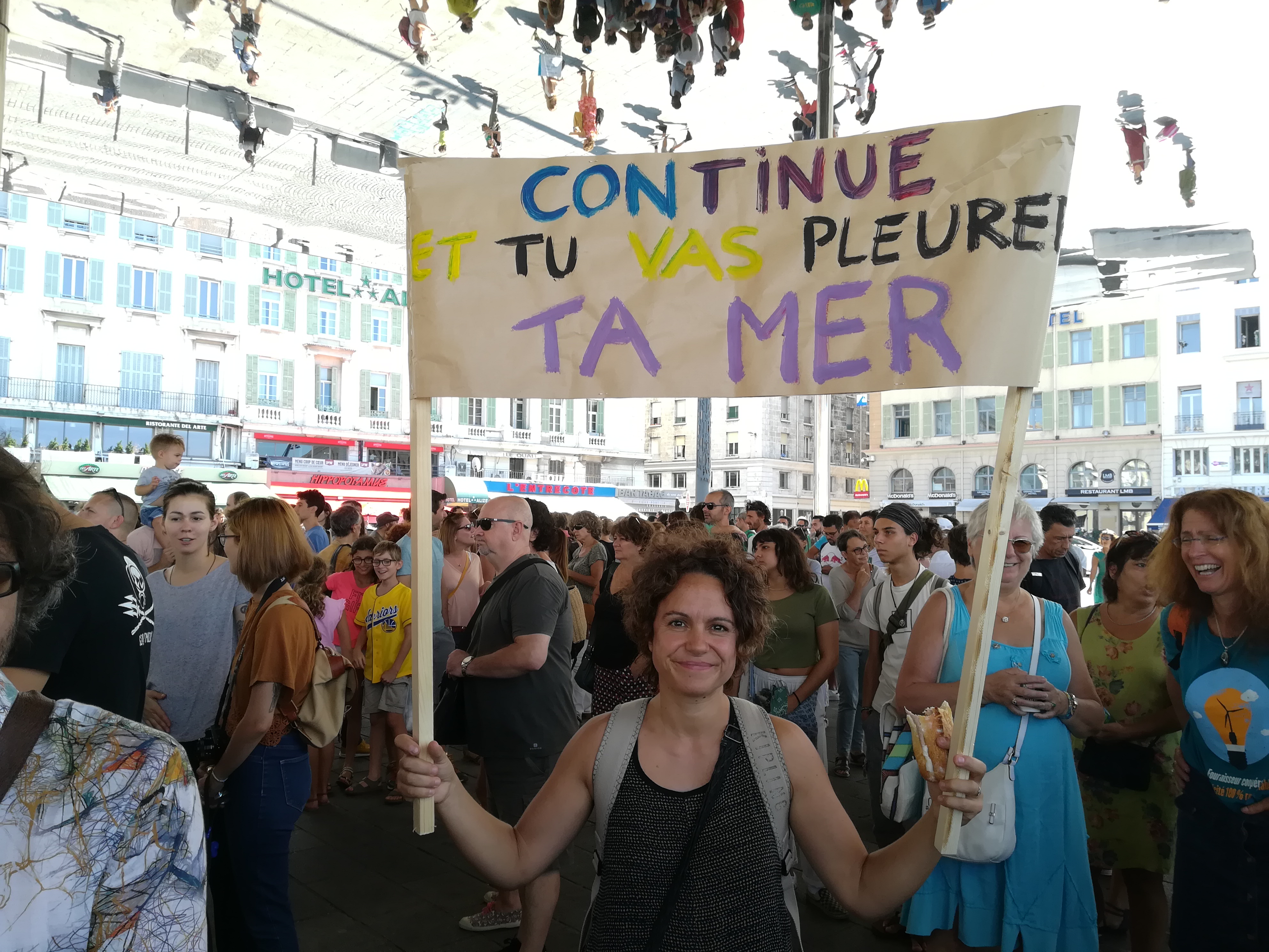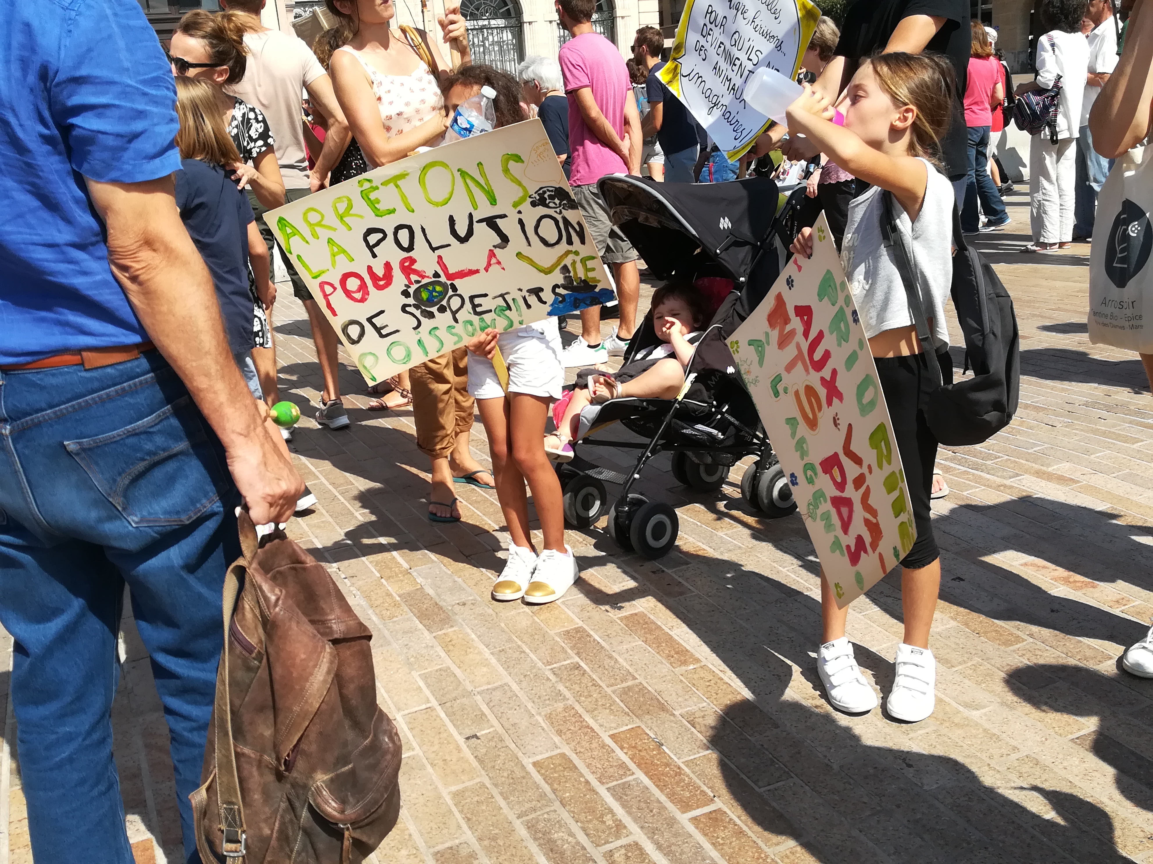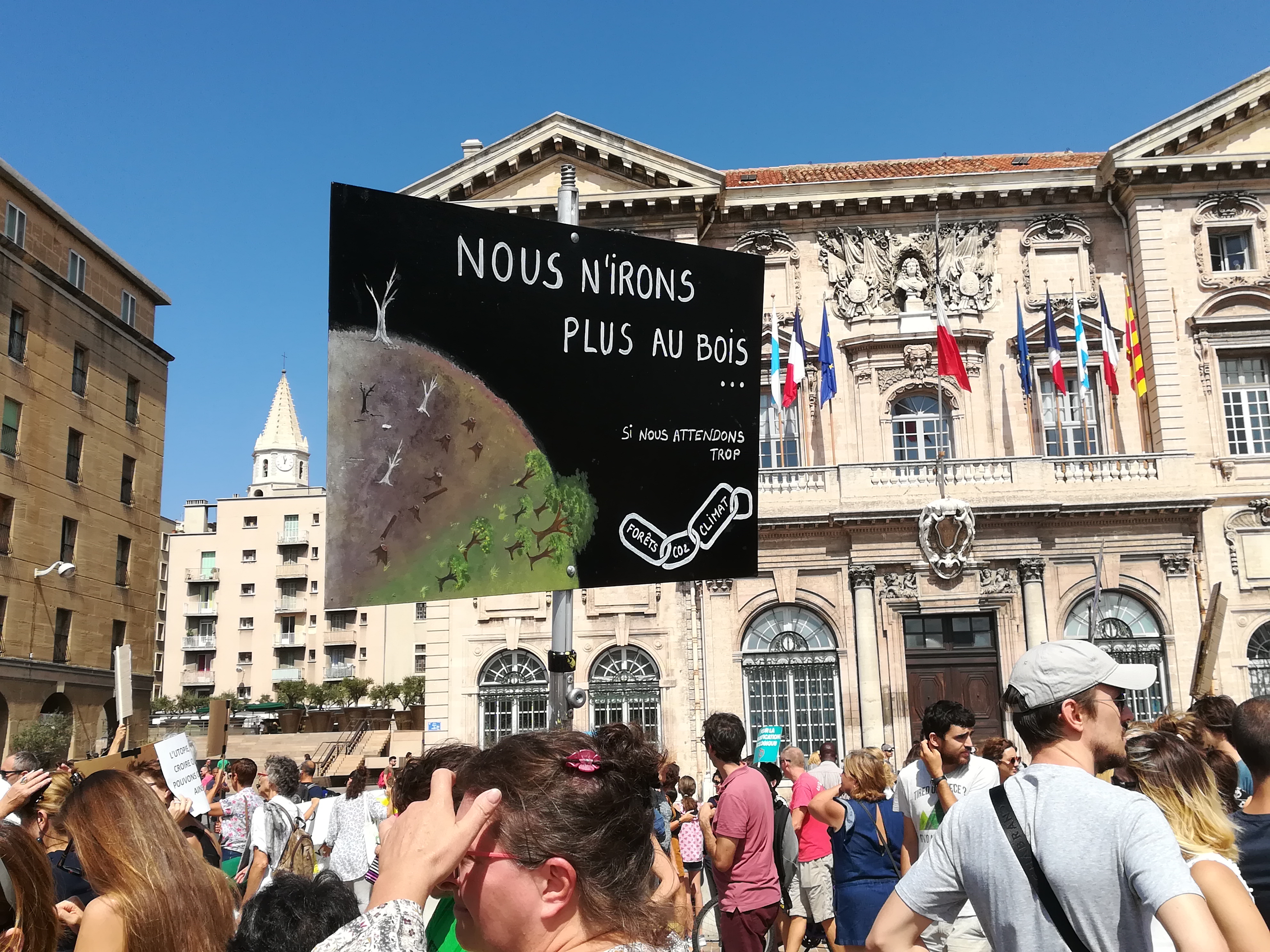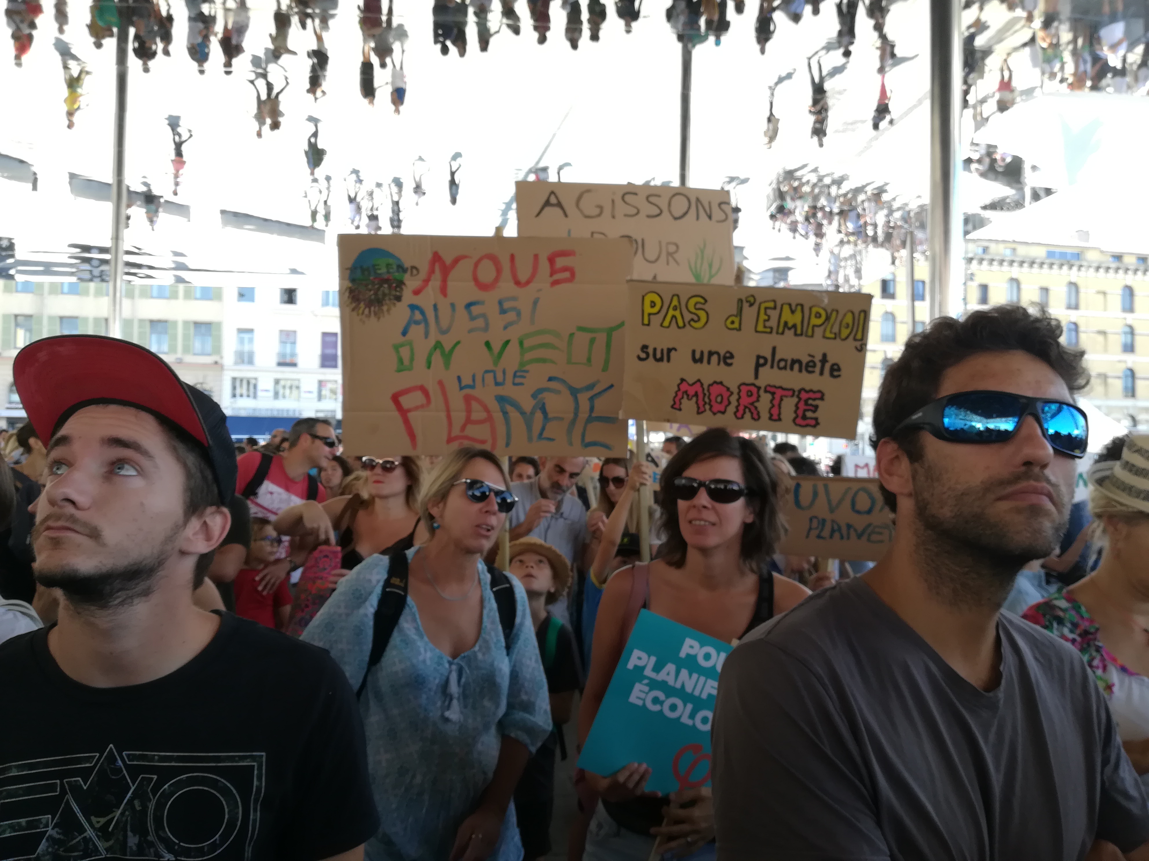 Forte mobilisation ce 8 septembre au Vieux-Port pour la Marche Pour le climat. Beaucoup de pancartes « faites maison », et beaucoup de très jeunes manifestants.