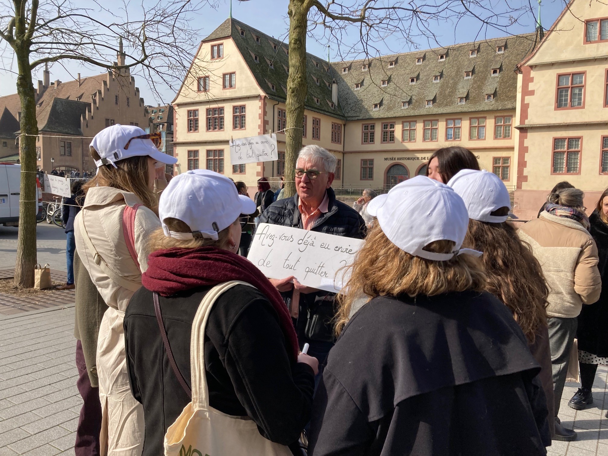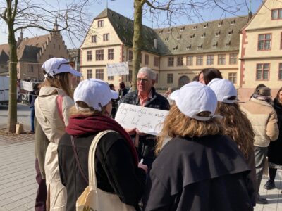 Le 7 mars 2026, 25 membres de La Cimade en Grand Est se sont retrouvés pour une action collective publique dans le centre-ville de Strasbourg pour engager le dialogue et dénoncer la fabrique des sans papiers. Retour en images