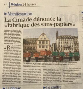 A travers cette action « coup de poing », nous avons souhaité « rendre visible l’invisible » et dénoncer « la fabrique des sans-papiers » en illustrant la complexité et l’absurdité des procédures administratives qui maintiennent des milliers de personnes sans papiers dans l’irrégularité, les privant de droits et les condamnant à vivre en marge de la société.