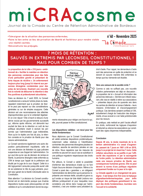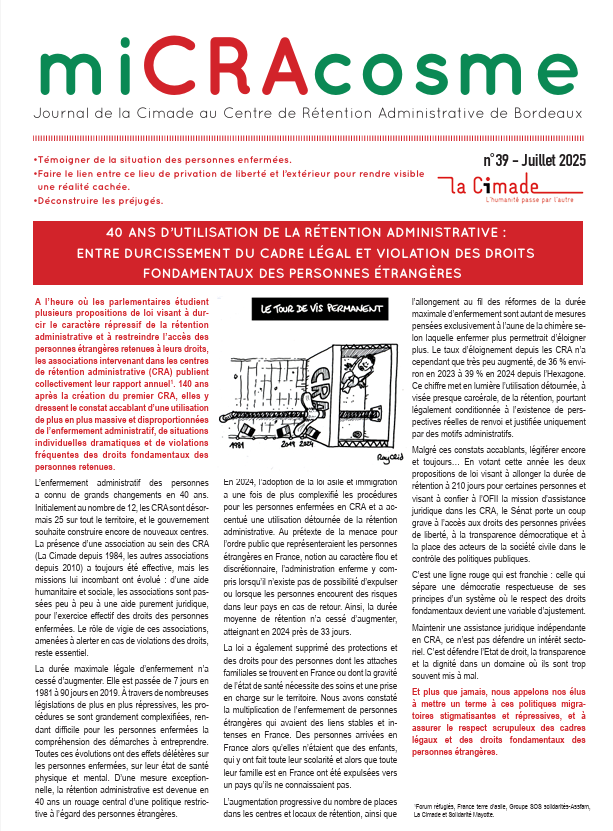 La nouvelle CRAzette, le journal des intervenant.e.s de La Cimade au CRA du Mesnil-Amelot, ...