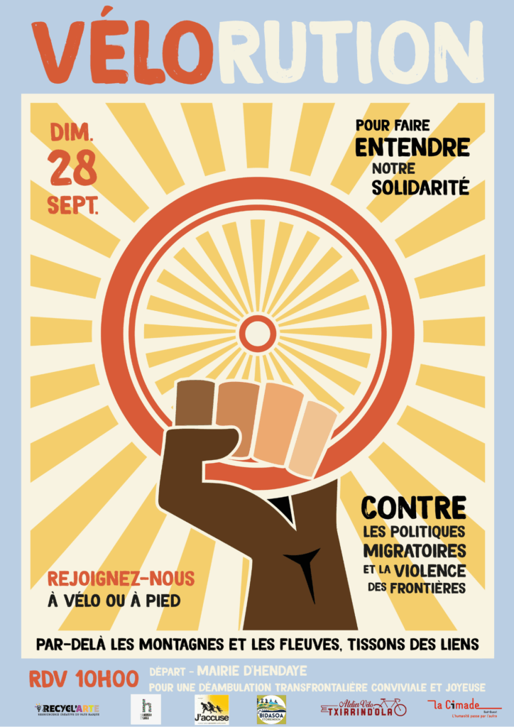 Face à la stigmatisation des personnes étrangères et à la criminalisation des solidaires ; pour protester contre la politique migratoire et dénoncer l’enfermement des personnes étrangères, nous organisons une déambulation pacifique à vélo sur des lieux emblématiques de contrôle et d’enfermement.