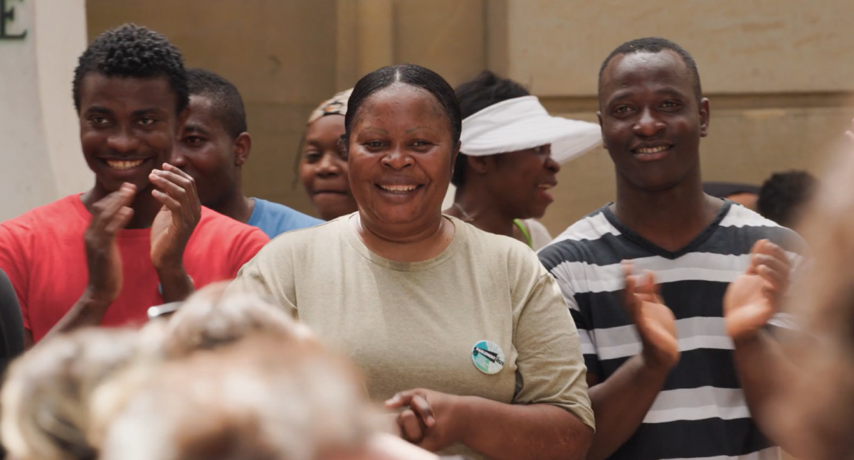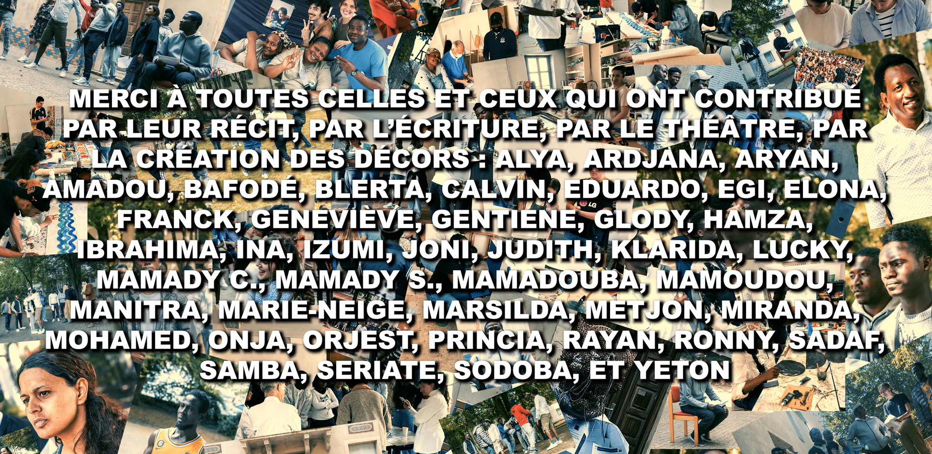 Ce travail s’est préparé pendant 6 mois, a engagé 44 personnes exilées dont beaucoup sans titre de séjour ou bénéficiaires de la protection internationale à dire leur histoire difficile, puis à être actrice, acteur, décoratrice, décorateur, sur 30 ateliers de demie ou journée entière.